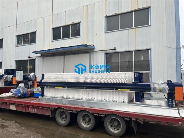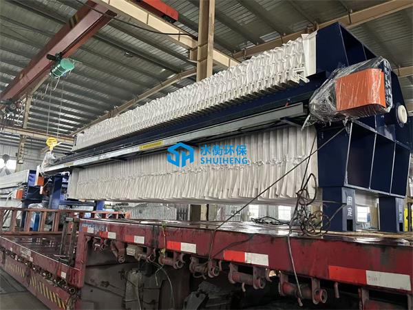 我公司两日前刚刚制造完成了一台大型板框压滤机。此台压滤机采用碳钢材质,过滤面积